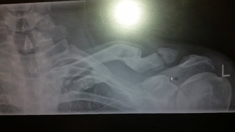 Due to the anaesthetic properties of the shock reflex I managed to pop the bit of my collarbone poking straight up out of my shoulder back into roughly the position it was before the break and that's where it still sits now: