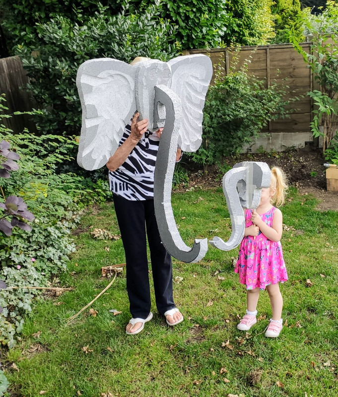 It has been unanimously agreed by Belle that the elephant should be used as a mask to look around the garden and smell the flowers This is a lot easier when it is polystyrene WITHOUT a coating of concrete.