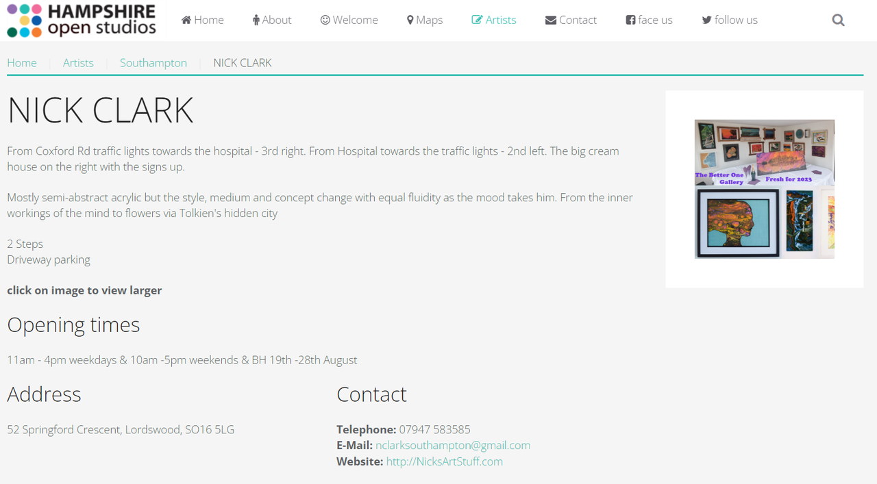 Hi All - if any of you are wondering what to do on a lovely Sunday to see some art, please consider popping in to see my two galleries : https://hampshireopenstudios.org.uk/artists/southampton/item/nick-clark
