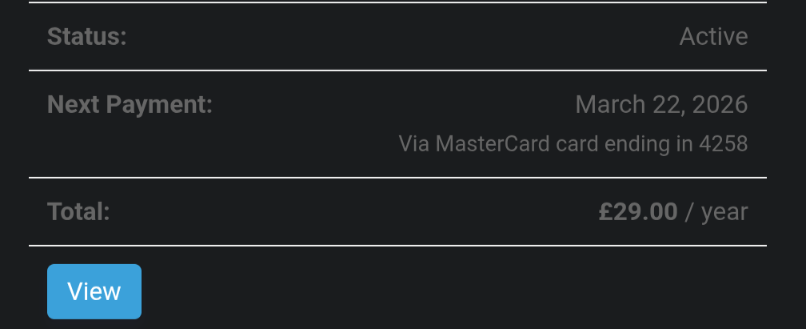 Same thing has happened to me the last few years, this time though, I've got a new payment card, so I'm going to let it run out, see how bad the forum is without. I'm not coming on here so much these days, what with the new forum quirks, and the advertising that I pay not to see, so it might stop me coming on altogether.