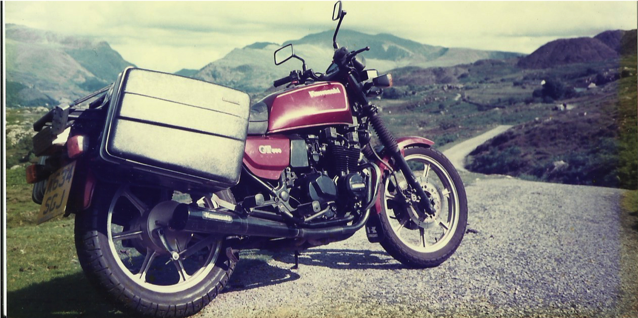 This was the best bike I ever had ,pictured somewhere in Wales. I later bought a GT750 and it wasn't as fast as my 550. All my friends with bigger bikes were amazed by it.