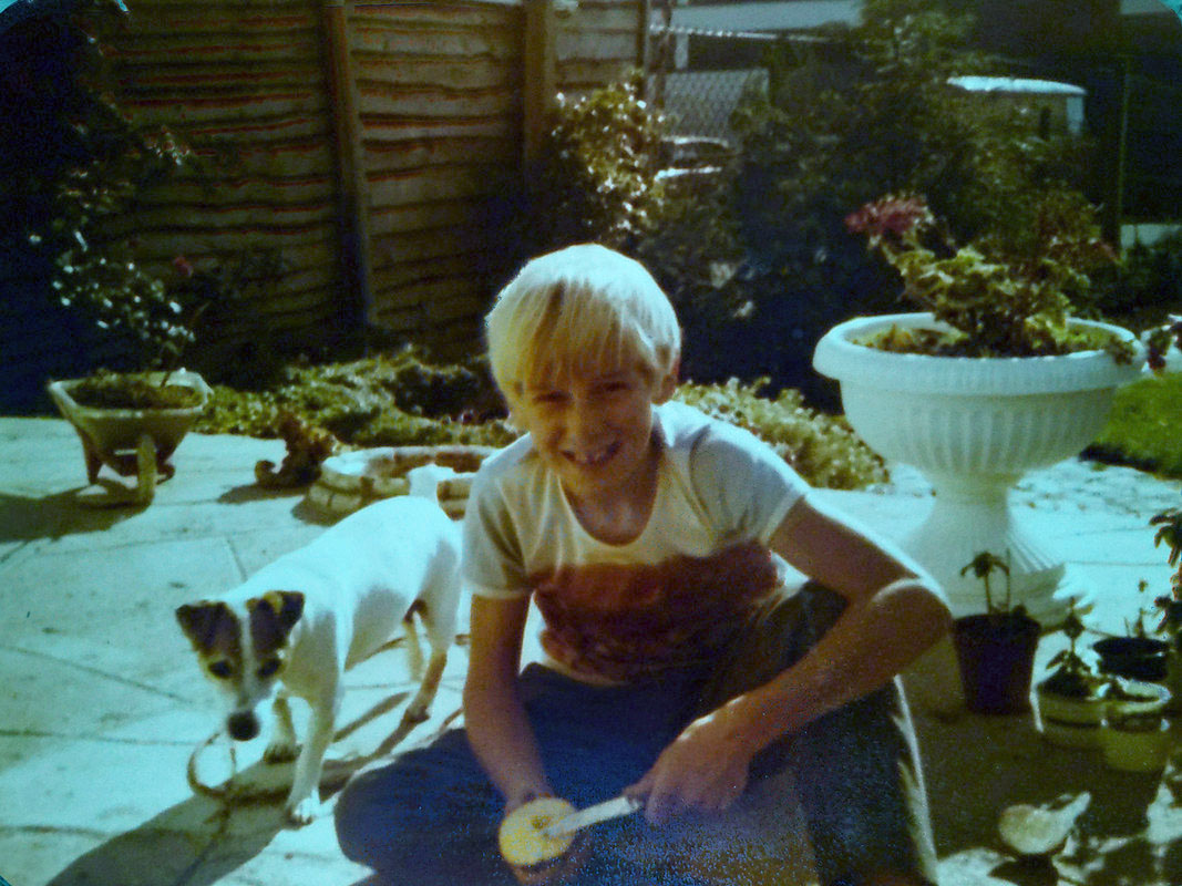 Me at our house in Hoo with Titch, our first dog. Good example of what I'm trying to restore.