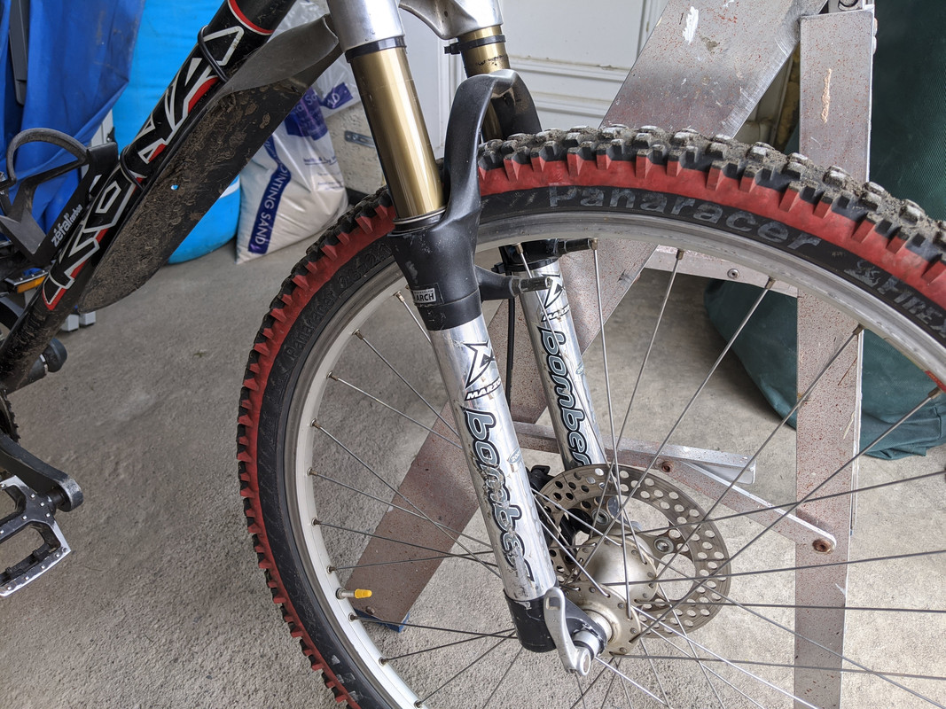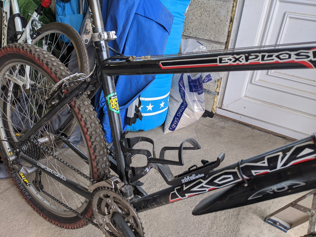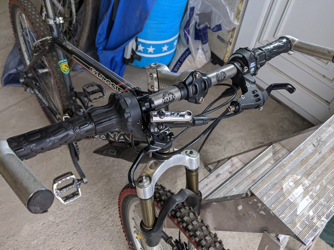 It was a Kona Explosif with an 853 frame and 8 speed XTR groupset, Bomber forks and Mavic wheels. The only thing non-standard on it is a newer hydraulic XT brake on the front.