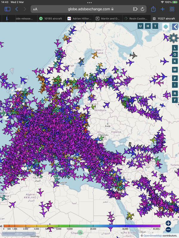 Switching the U off and seeing all the planes diverting round the Ukraine airspace plus some shows the airlines are not taking risks this time.