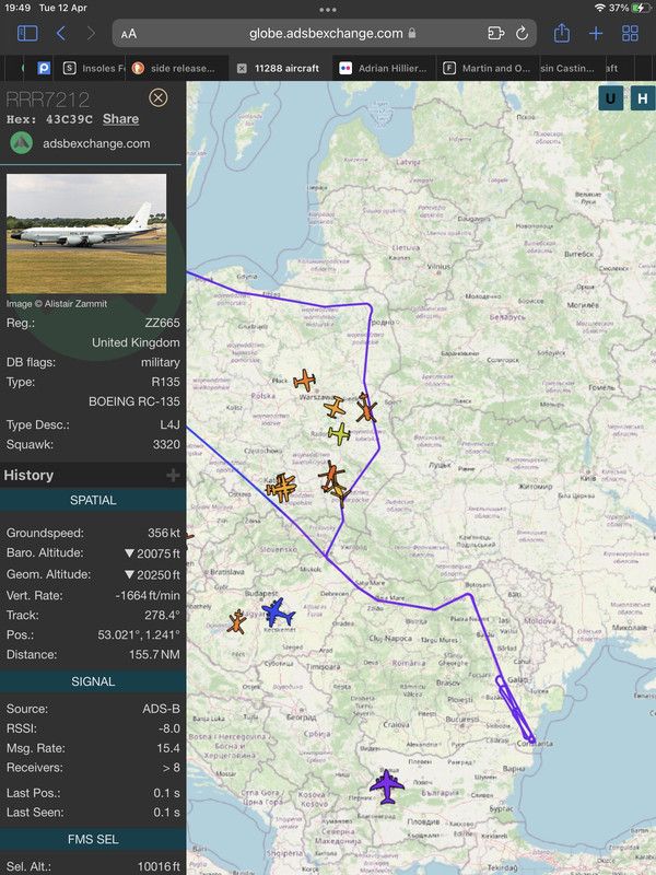 RAF RC-135 on its way back home after a jaunt across to Moldova, I like the way it very neatly followed the borders south…