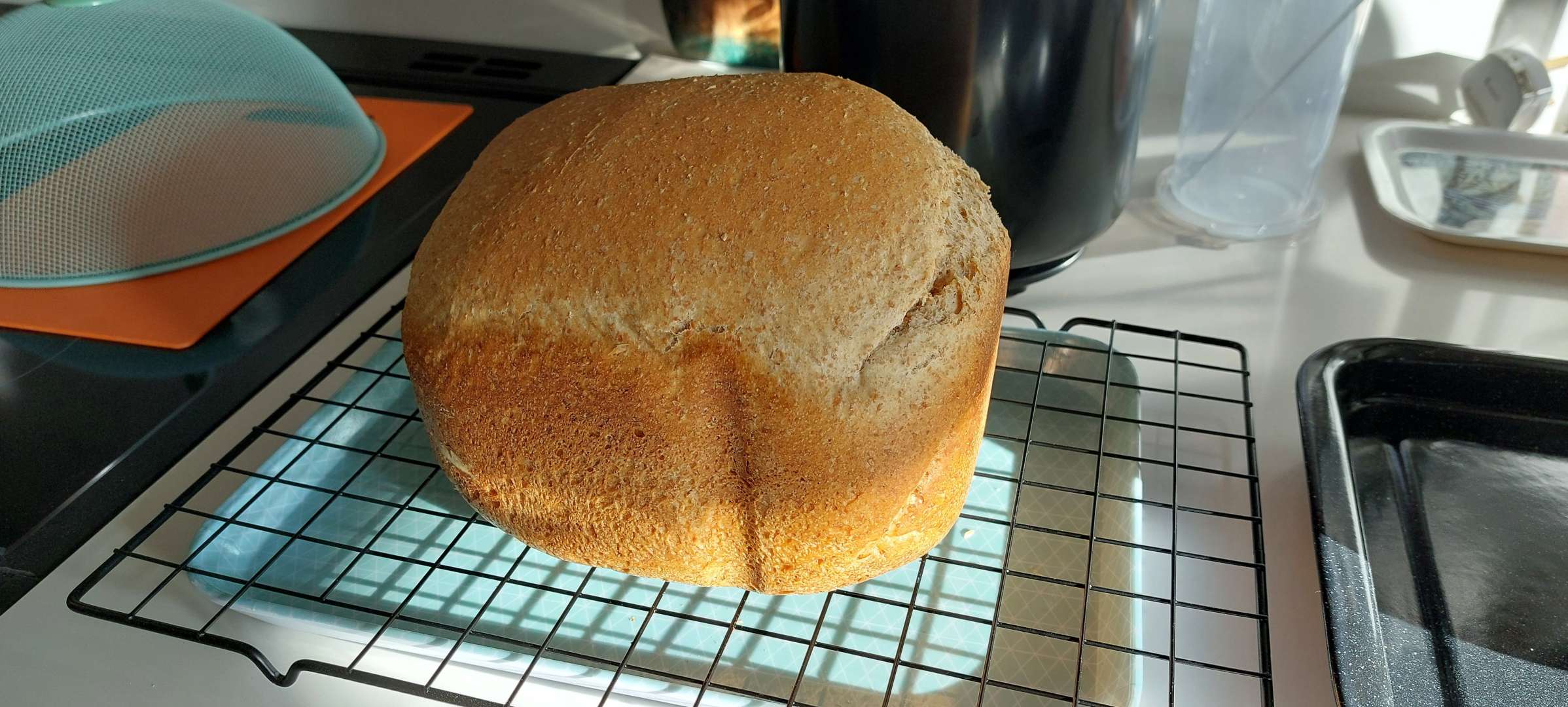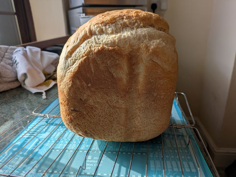 In other news, I have long been irritated by the weird shaped loaves, and I realised this is because the tin has to be that size so the paddle mixes it. I solved this problem in my head by having two paddles. Turns out that many manufacturers have tried twin paddle bread makers and they haven't been successful. A Breville one turned up on local eBay so I bought it. I'll let you know how it goes.