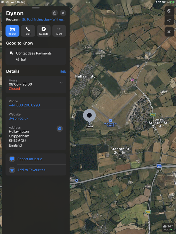 He also had plans to turn the old Stothart and Pitt buildings in Bath into an international industrial design and development university, and Bath council refused to give permission, due to flood concerns. The fact that around the same time other developments were taking place all along the river, including a large shopping redevelopment which involved digging a hole about fifteen meters deep for an underground car park less than 100 metres from the river shows how much concern the council had for flood risk, when Dyson’s project was entirely above the river wall, with offices and other buildings literally right next to it. His technology centre is on the old Hullavington airfield, not far from the M4, where he was doing development work on an electric car, which was abandoned due to the vast cost involved.