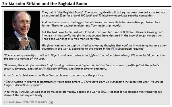 As an aside, Malcolm Ri****d, cousin of Leon Brittan ([url= http://www.heraldscotland.com/sport/spl/aberdeen/defence-secretary-over-rules-advice-and-gives-a-jobs-boost-to-westland-ri****d-puts-britain-first-in-copter-deal-1.690862 ]also known for dealing with Westland[/url]) and father of journalist Hugo Ri****d, also shared directorship of a company with Sir John Chilcot for a number of years...