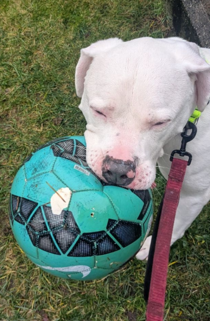 @mrmonkfinger He still has a smiley face mark on that leg. He's now sensitive to dogs that have restricted breathing due to the snub nose. They whistle at a pitch I can't hear but he has to go on lead if we don't have Ball to destract him. I also need to be aware if anyone I'm talking to has a tracheotomy as they whistle when they speak and he gets a bit tense and growly. Thank goodness that Ball is Life and if that is present no problems at all with other dogs.
