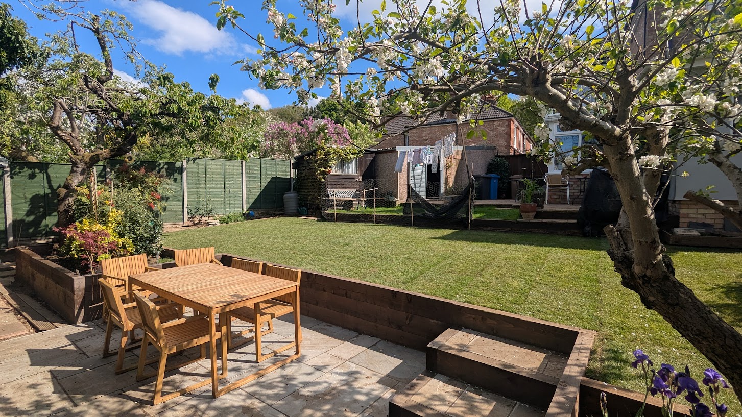 The house is a semi where the “uphill” side is attached and the gardens are only a few inches different after levelling.