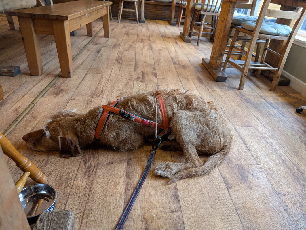 She's a bit out of it after being knocked out, enjoyed the dog treats in the pub and then flopped out last night. Didn't get a walk this morning- not happy!