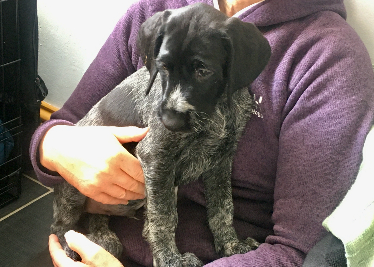 ... but last Friday we picked up an eight-week old German Wirehaired pointer pup. His name is Sprocket - as per Ogri's dog - and he's ace. I've always wanted a GSP, but the missus likes scruffy mutts, so we compromised and he's the result. Like all pups, he has his moments, but he's bold and bright and doesn't seem to be phased by anything, even next door's irritating barking West Highland Terrier.