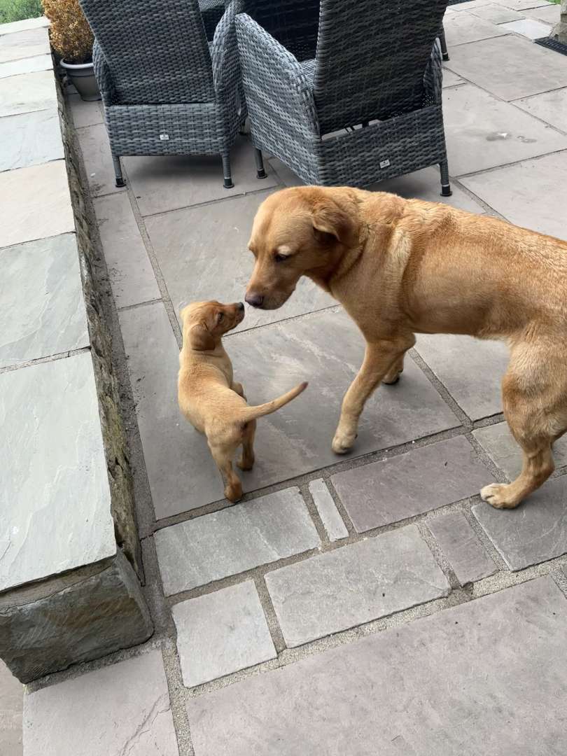 Islay is desperate to play with her, but has earned the occasional soft growl and eventually a bark if she pushes things too far. Still early days but Willow is putting up with her more than we expected.