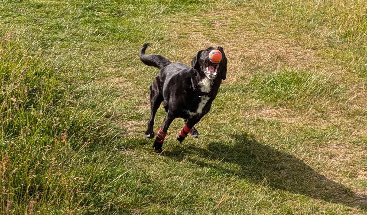 Roxie is getting close to fully grown. Still a pup in her head tho 😉 She's bigger than Lola now but not quite as fast yet and definitely not as proficient in the art of 'poovering' up the local cow and rabbit waste products. She's started to swim a bit now as well.