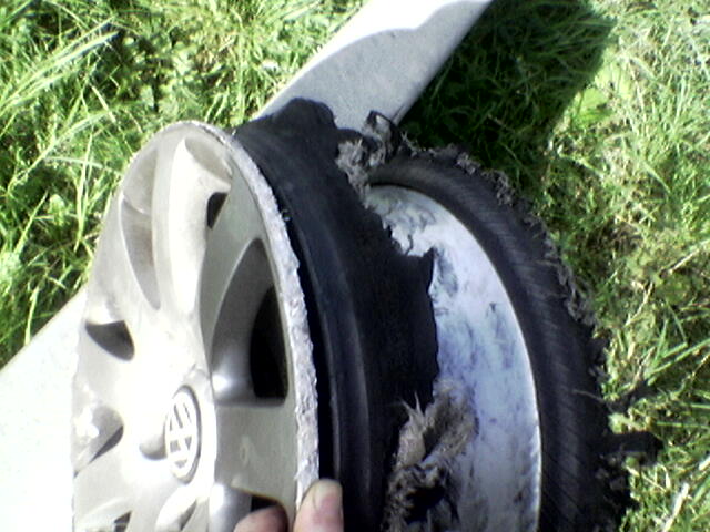 Will she be able to use the repair kit? My sister's new car has a compressor/tyre sealent kit in it, if she does get a flat I reckon she wouldn't have a clue what to do with it. Think spares are on the way out as plenty of people haven't a clue how to change one and would just ring breakdown recovery or a garage. Dunno if this is a good thing or not, replacing a tyre on the motorway is damn scary but dunno if i'd be without one, no repair kit will patch something like this[img]
