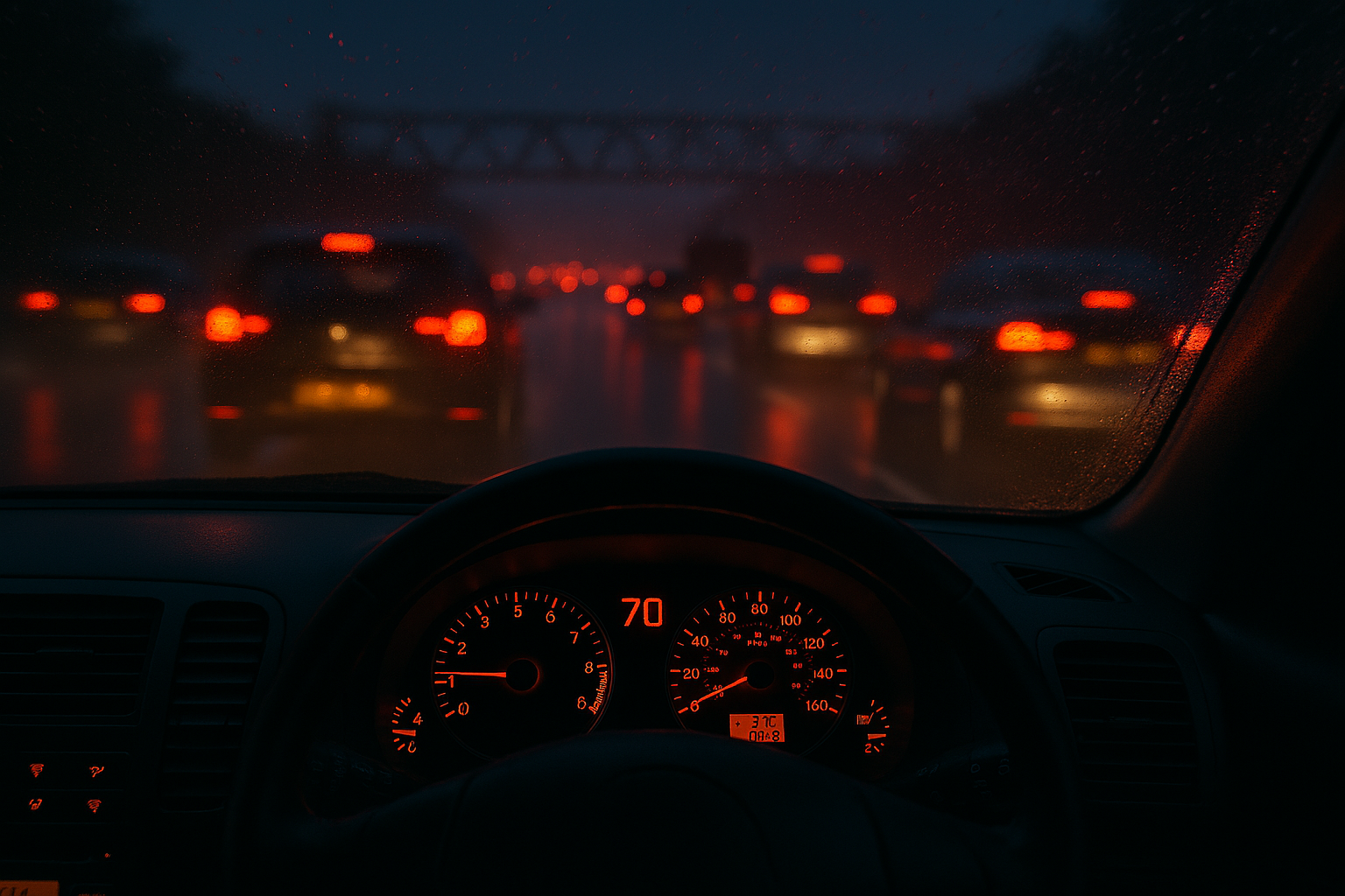 Its 5pm. Friday. November. Long week at work. Your on the M62. Its wet, bit windy, the traffic is crap. Glance at the radio. Glance up.A split second. A sea of Red Lights. Car veering into your lane ahead.