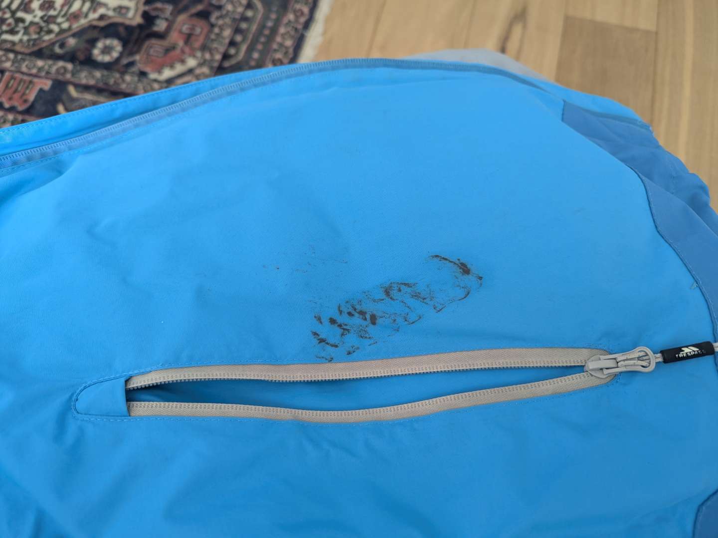 It's a trespass jacket. The material just says 109% polyester but it feels vaguely pertexy.