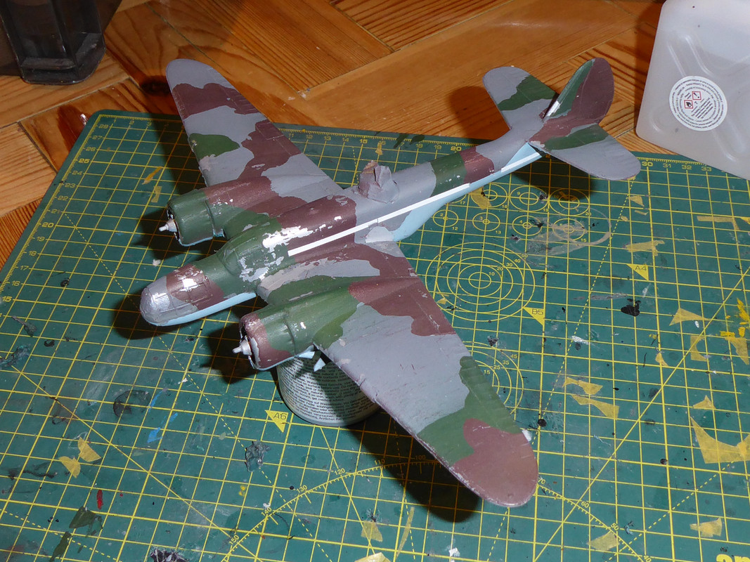 Impatience, poor masking tape and brown rattle can yesterday, ended up dealing with the overspray today on the bottom of the Blenheim.