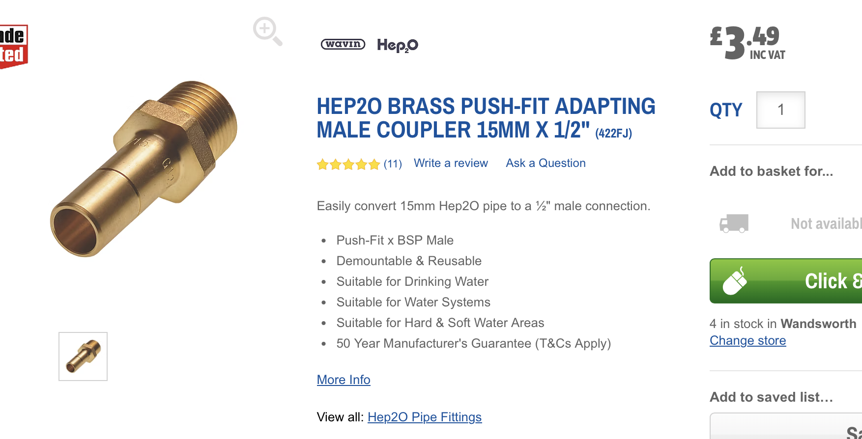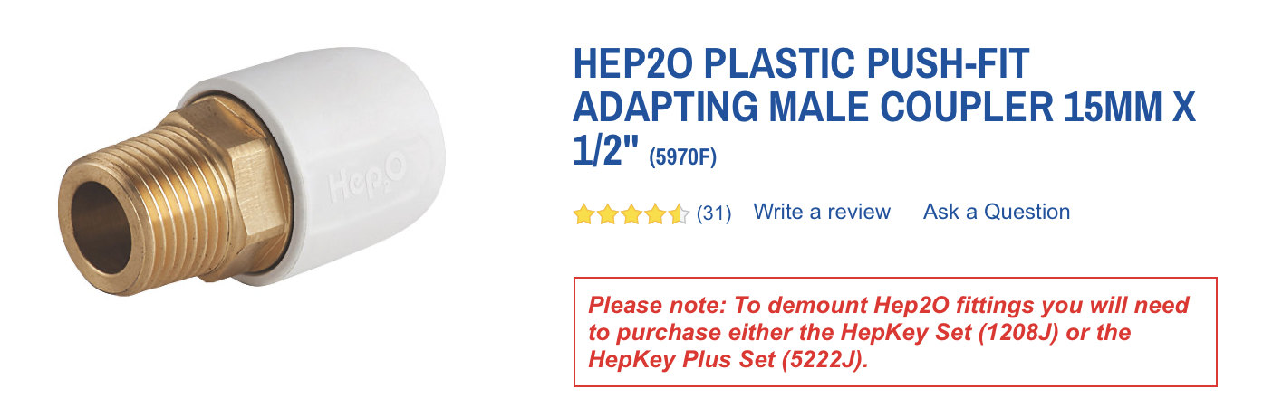 That's exactly what I want - then I can have a Hep20 fitting on the end of the plastic pipe and it's all reversible. Again, seems ridiculous that those adaptors aren't available at either Screwfix or any of the mainstream plumbing places.
