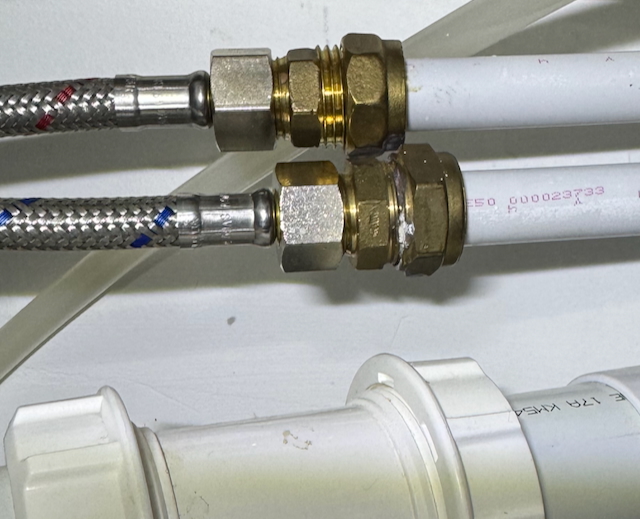 So, the issue. All my plumbing is plastic/pushfit and it's been faultless. The only issues I had were where I had to resort to brass fittings.