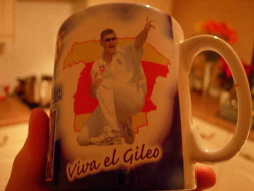 The Warks fans nicknamed him King of Spin after he got a load of wickets in Test matches in 2004, and the club commissioned a mug with his face on one side and 'King of Spin' on the other. Unfortunately the message was lost in translation and they came back with King of Spain on them, which the club promptly jumped all over and made a killing with spanish flags, a rerun of mugs with Juan Carlos on one side and Giles on the other, and so on.