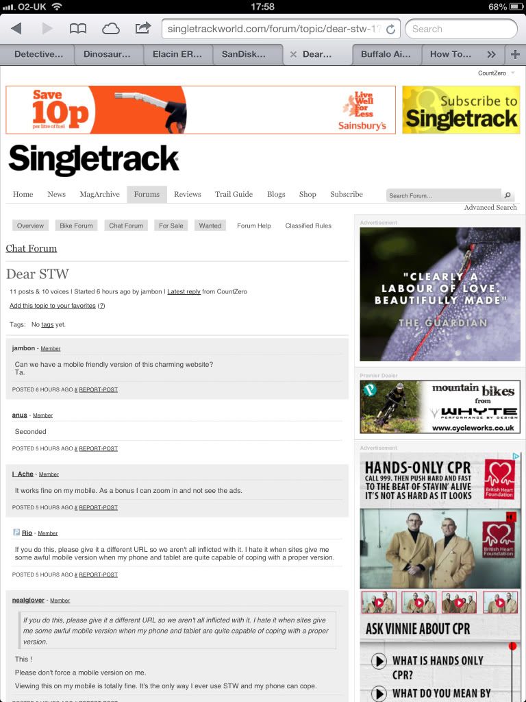 Neil, sorry, just caught up with this thread again, I'm using Safari, it's my default browser, on an iPad 3, iOS 6.0.1. I occasionally use others, but not often.
