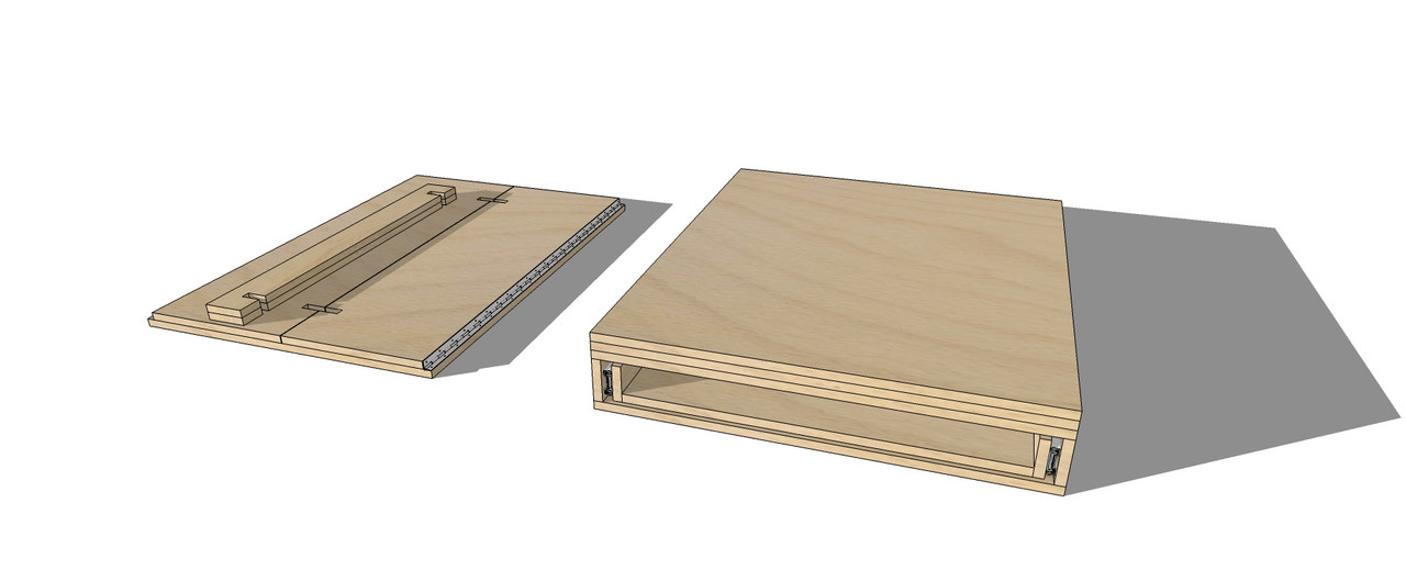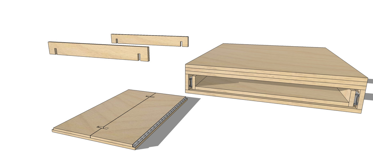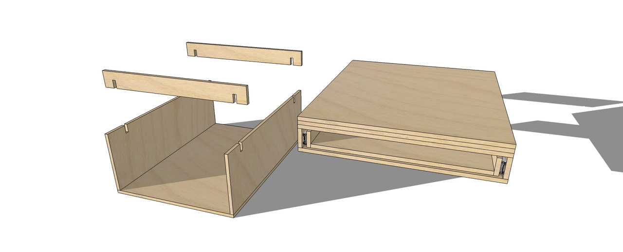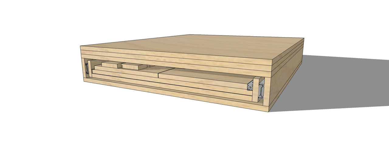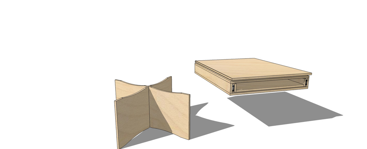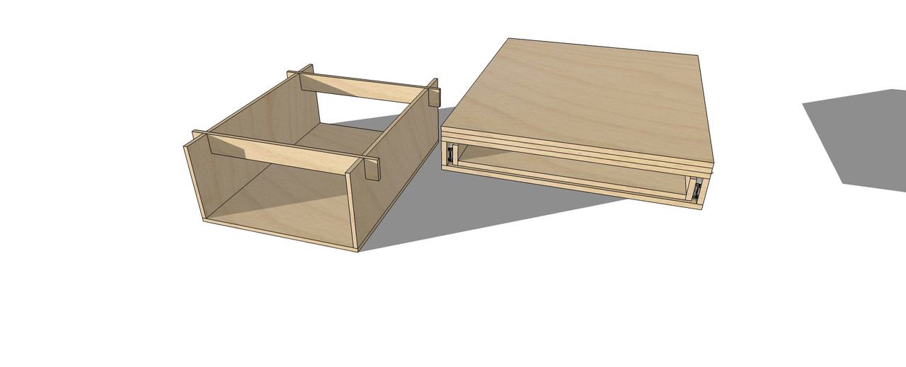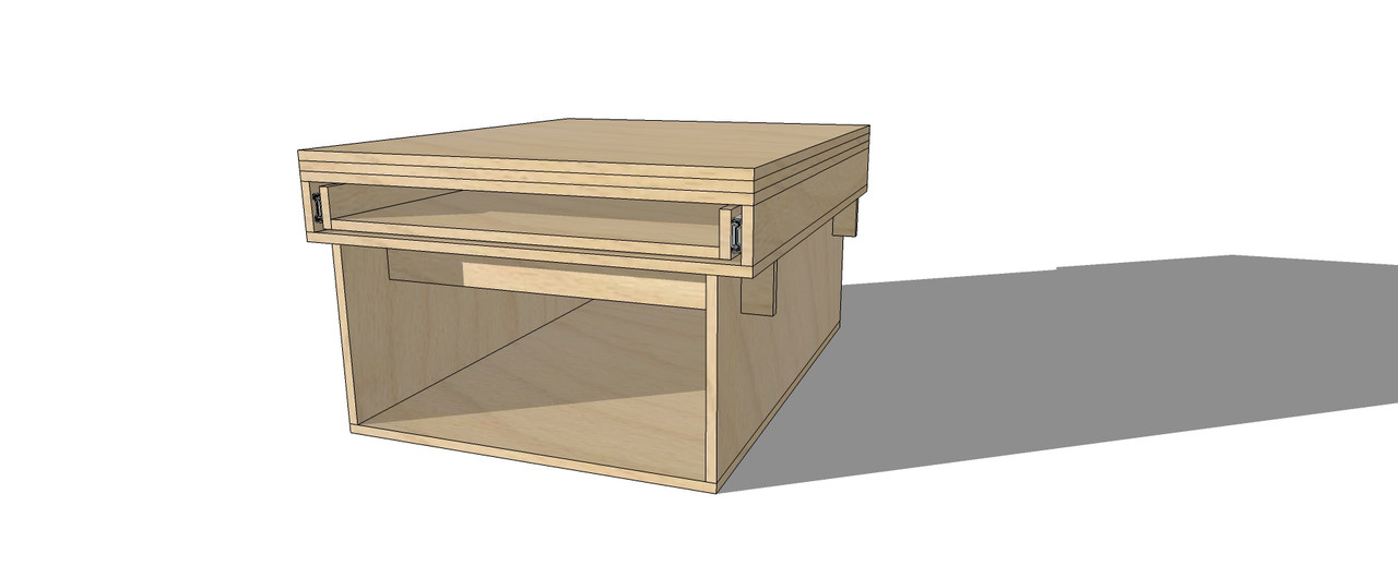 Otherwise, what about something like this below that wouldn't need any hardware and would dismantle and store in the box (albeit with the box reduced to just under the sliding tray) The only downside I would think is that you would lose a bit of easy storage under the box. You'd still have storage, but slightly compromised I suppose.