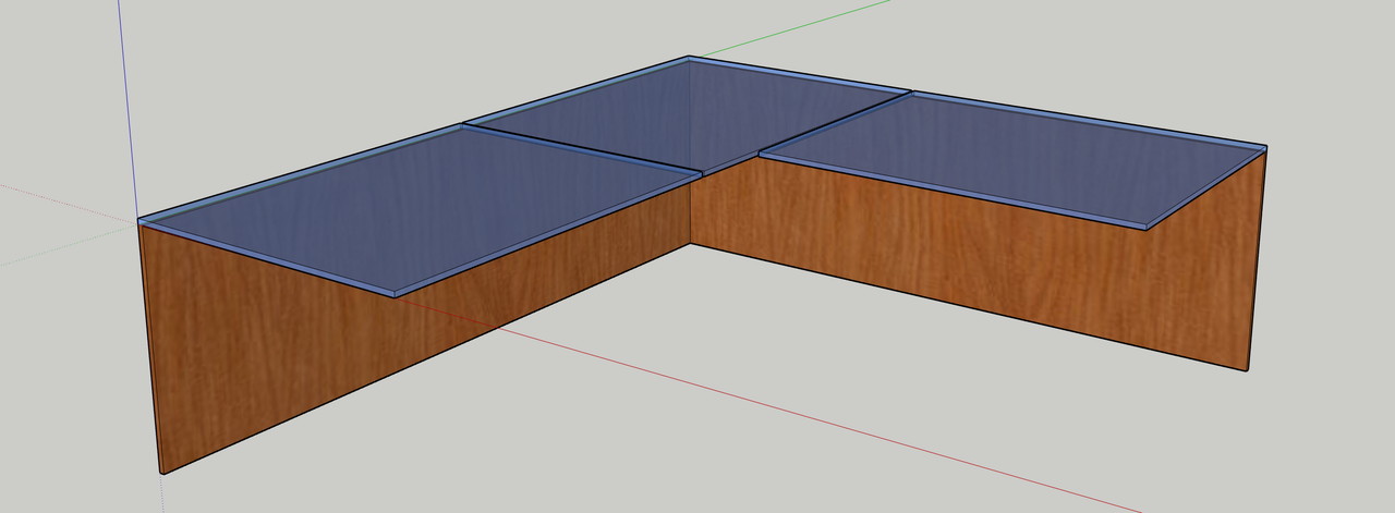 I was thinking that I might use 3 of the glass pieces to replace the existing desk and have an L shape desk. It would basically be as-is but with the L bit against the far wall.