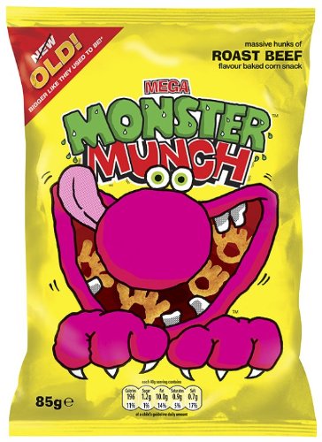 Ahhh beef flavour monster munch, all time favourite crisps, but I'm sure they were bigger and beefier in the 70s ... scratch that, it was just me that was smaller ... he he ... 8) however, in the interests of market research I have discovered that Lidl do a perfectly acceptable pseudo Frazzles, all I need now is a budget nice and spicy nicnak and my day is made.