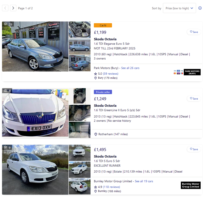 So if it has FSH, long MOT and is generally well cared for, then it could sell for twice that or a bit more. People like diesel Skoda estates, e.g. for minicabbing.