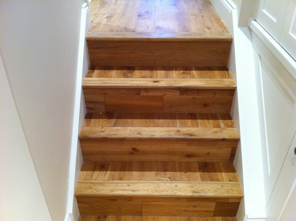 If you don't mind laminate then quickstep do a flooring system which has profiles for the steps. I don't have it in my house but have seen it and it looks very, very good.