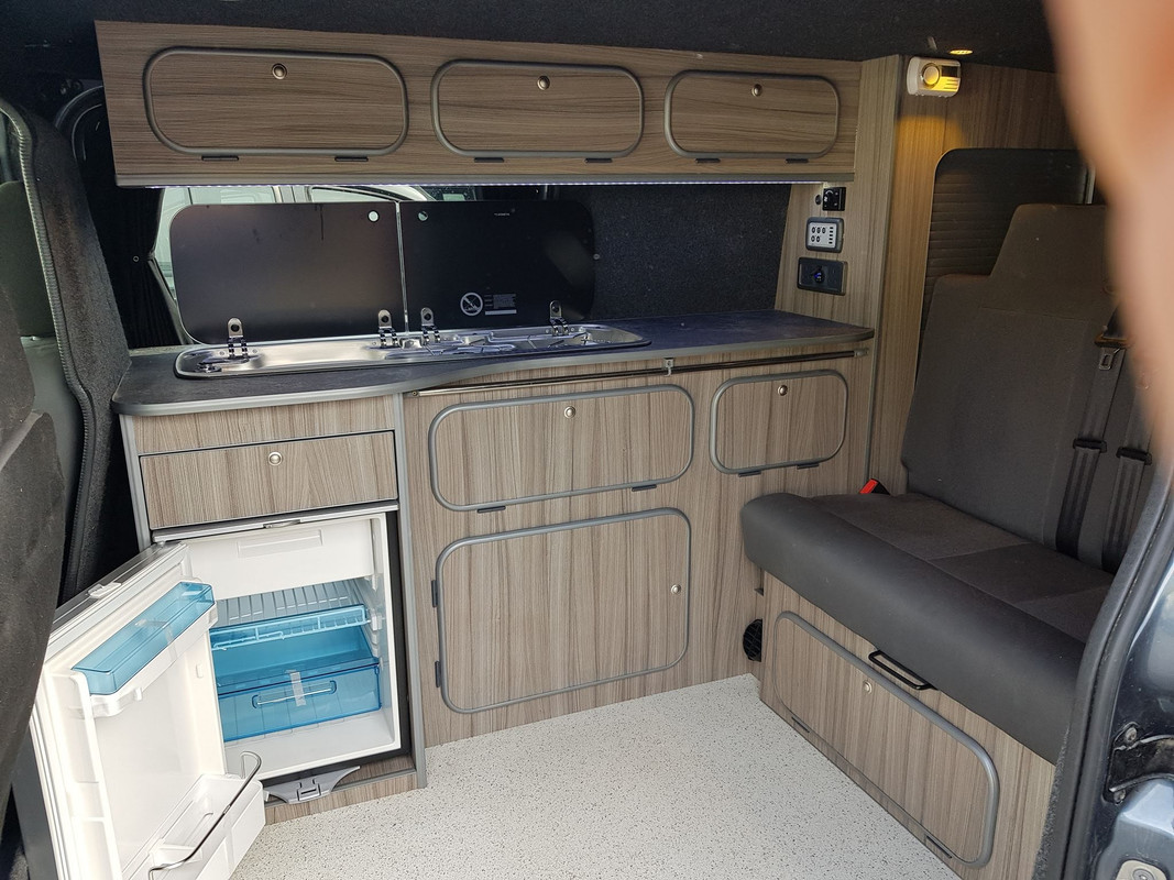 The VW Beach above doesn't have a fridge. The fridge is one of the most important things for us. When we were between van's and staying in hotels I really missed not having a fridge.