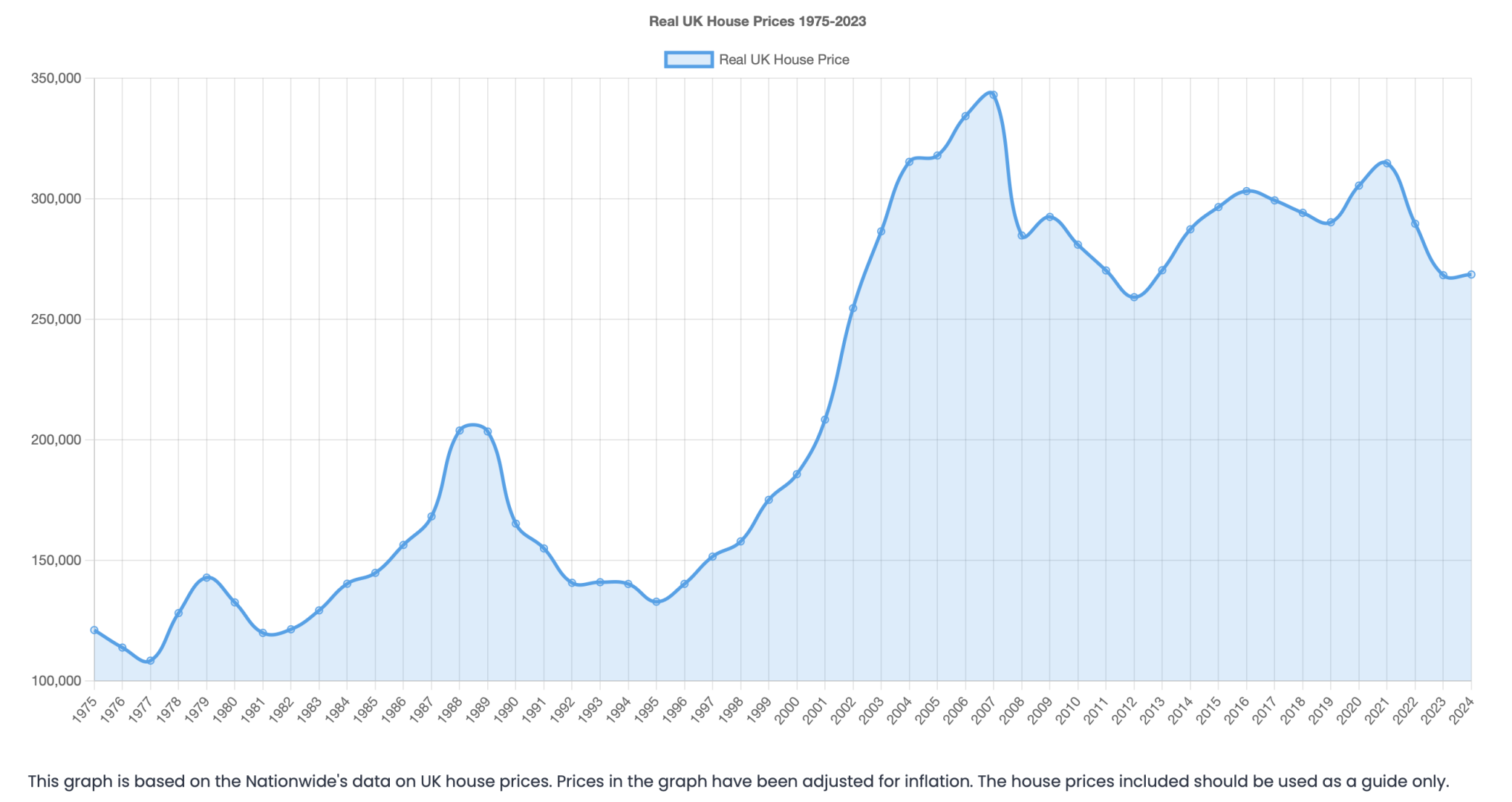 I posted this the other day. If you bought property in the 90's you've done really well. Post 2000? not so much - we're only now where we were in 2003 in real terms.
