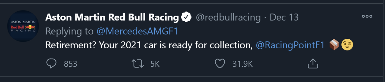 I think Mercedes gave that one to Red Bull as a concellation prize.