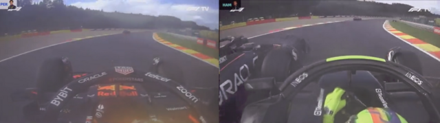 As for Perez having nowhere to go, look at the onboard view, there is quite a bit of available space on the outside. Again, same for Verstappen 2021. The squeeze here was intentional as part of his defence.