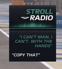 Fair play to Stroll. Only 0.5s behind Alonso in the state he’s in and having not done any driving of the car until this weekend.