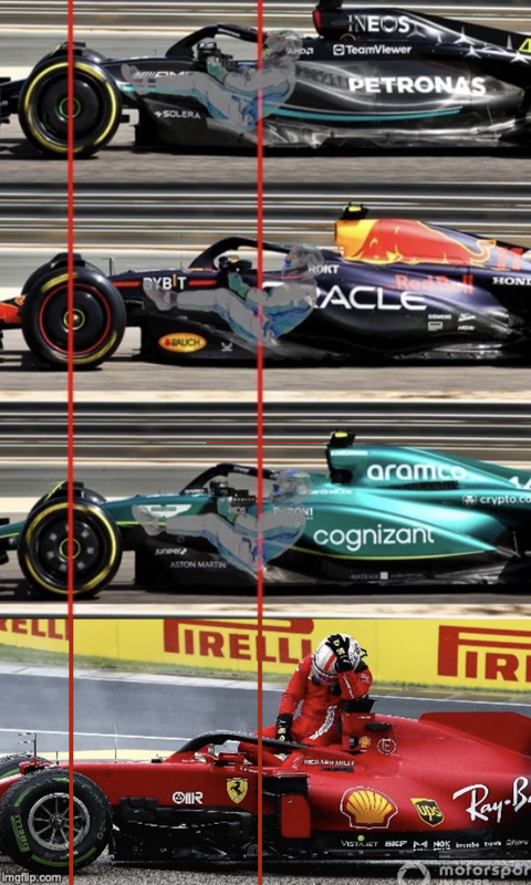 Nice comparison of Merc, RB, Aston and Ferrari's driver positions here