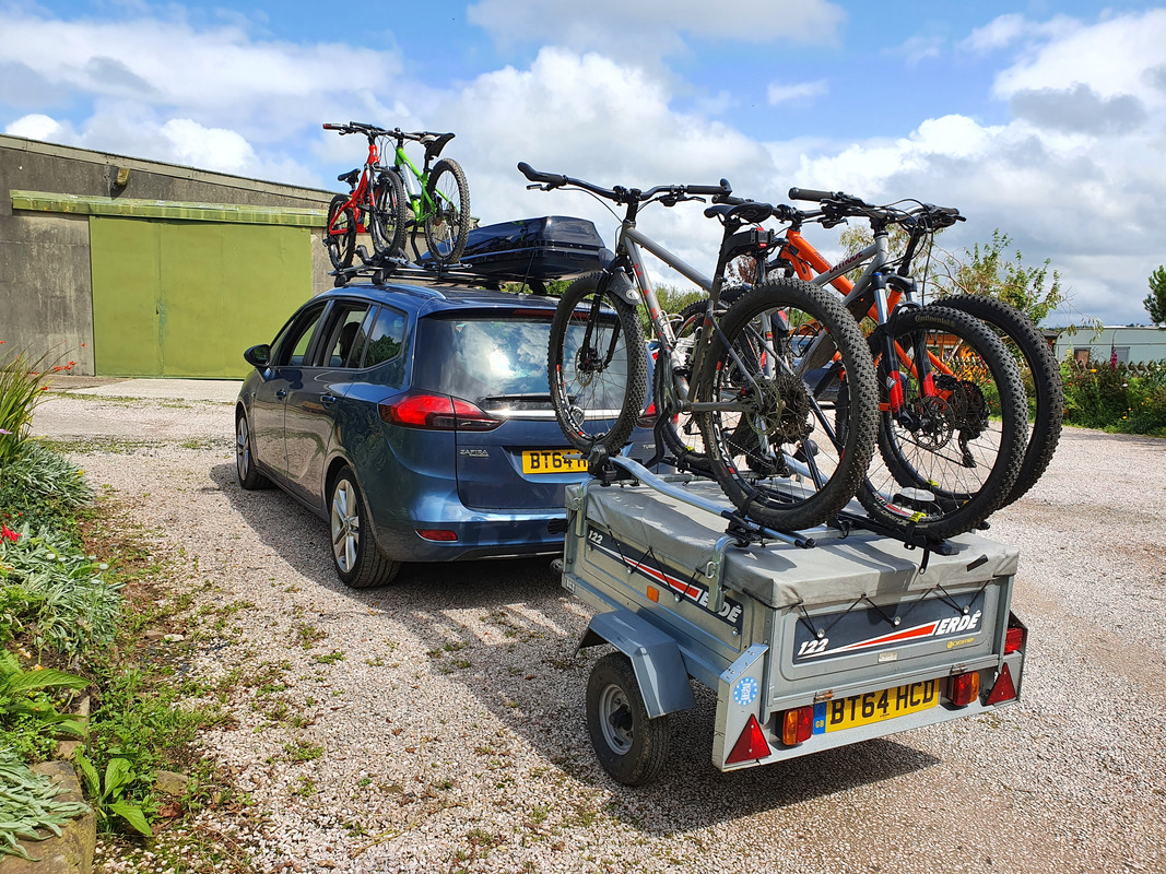 Last time we went camping there were a couple of people with trailers which had a roof box on top of the trailer, bikes then on top of the car. Seemed a good idea, doubling the storage on the trailer