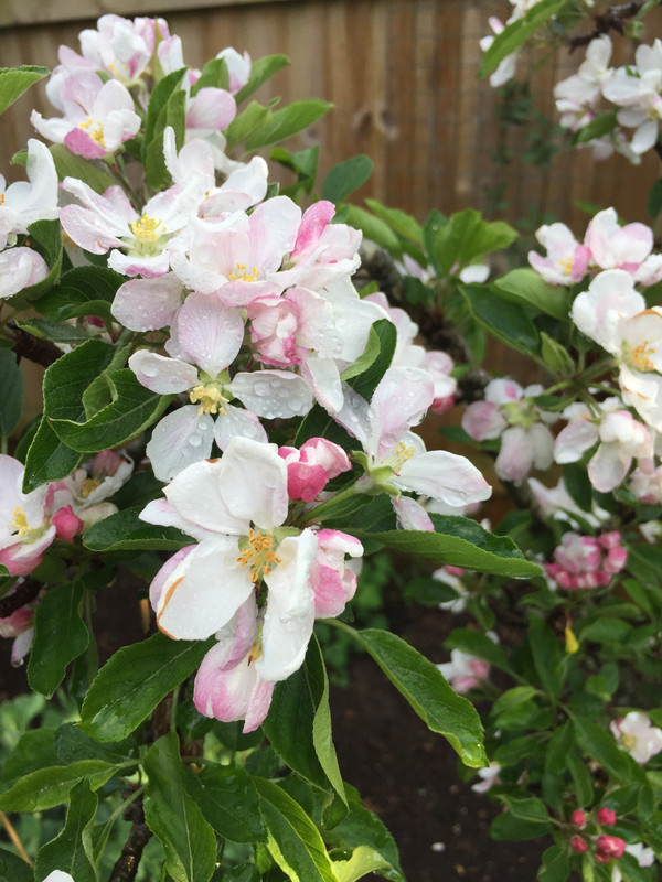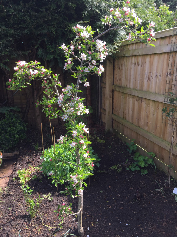 i also have a more recent small apple tree which is a heavy cropper. No idea which variety but tastes nice.