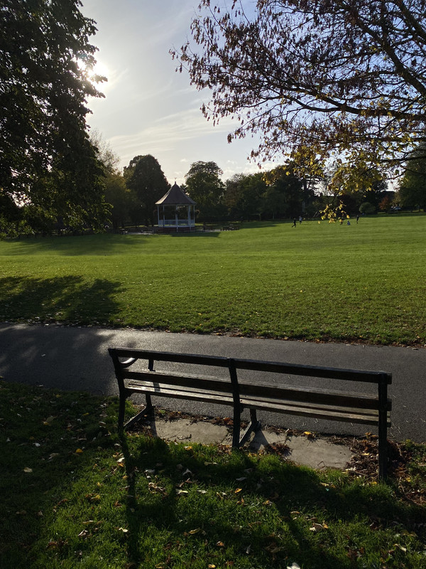 Currently this one, that I usually sit on for a bit while on my extended walk back home from town. It’s a lovely little park that’s well used, the band stand does actually get used.