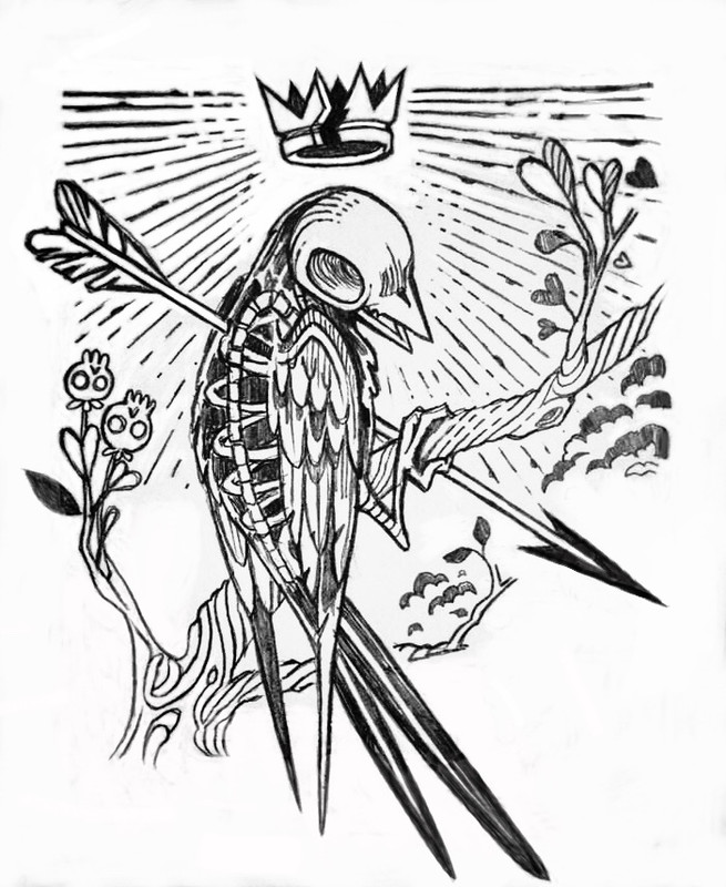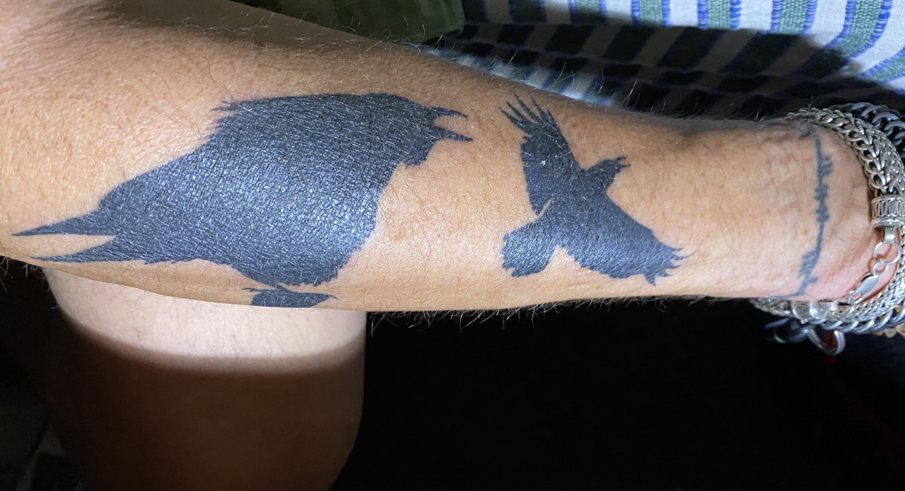 The design does have significance, the birds represent Odin’s messengers, his ravens Huginn and Muninn, ‘Thought’ and ‘Memory’ in English, and they’re a reminder of my recent loss, and also Joey developed a real love of the birds we see around here, including the ravens that occasionally fly over.