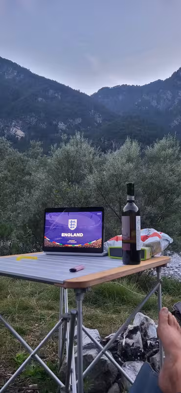 Watched it on a campsite in Brittany with many German clients on it, we were the only couple supporting England. Adopted the softly-softly approach to celebrating, mindful of Stuart Pearce's post-Italia 90 drugs test story.