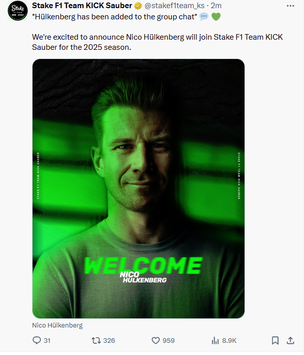 Possibly not the biggest news in F1 right now, but Hulkenberg has signed to Audi/Sauber