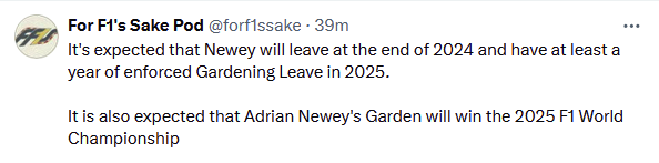 If I were Newey, I'd be insisting on an escape clause in case 2024 turns to shit for Ferrari and Fred is fired as the scapegoat!
