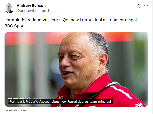 I see Fred Vasseur is now confirmed as having a contract extension to stay at Ferrari and it seems Max won't be able to trigger his escape clause from RB even if he wanted to. Looks like this year's mid season break is going to be a bit quiet after all - unless we get leaks from RB about why they axed Horner.