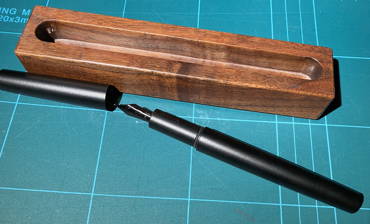 I have a fountain pen I use for writing cards and the very occasional letter that I got through a Kickstarter campaign, trouble is I can’t remember who makes it! It’s a lovely pen, though, very smooth and sleek and fairly heavy. It doesn’t have a clip on the lid, though, so it’s really a desk pen.
