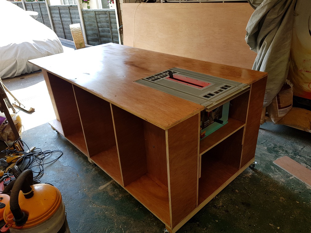 It has been loaded up and put on weight since this photo but is 120x240 and home to table saw and loads of other stuff. I can currently roll it from one side of the garage to the other depending on where I need the space