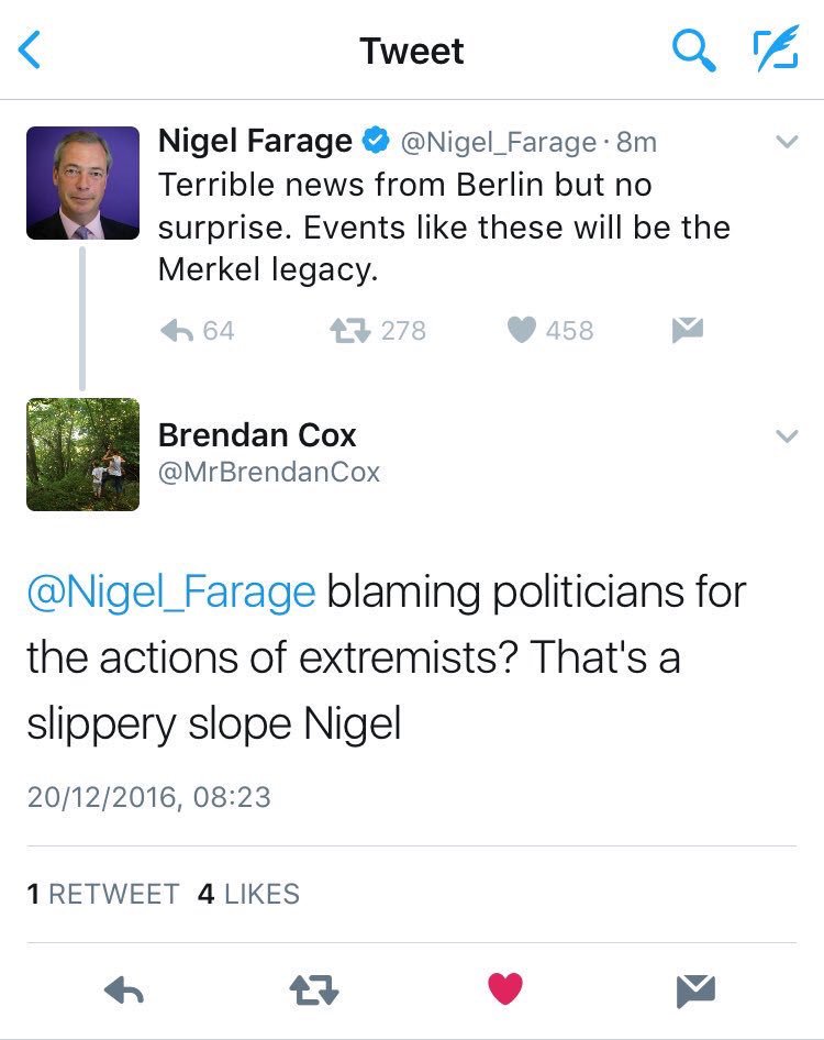Farage managed the unmanageable today - to sink below the level of the gutter. I almost pranged my car, listening to his BS on the radio about an hour ago. He has sunk below contempt now.