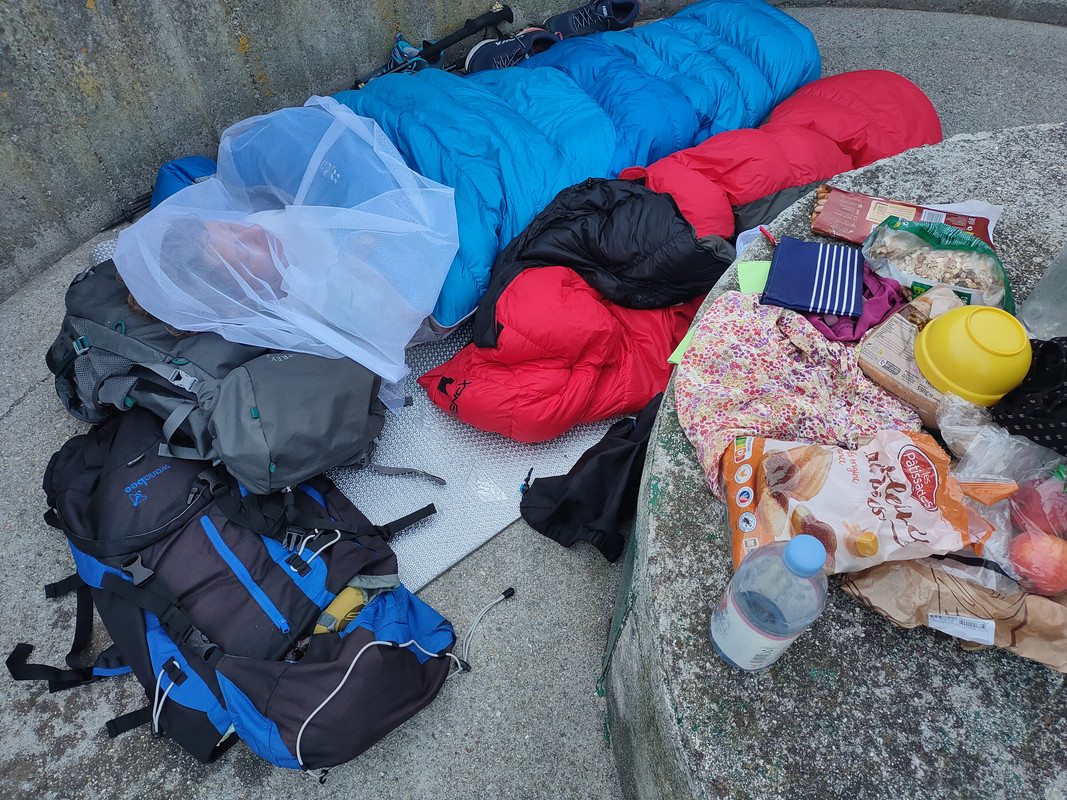 Now I have a tarp, I've used it a couple of times - but if its dry, I'm never entirely sure what good it does, other than being another "outdoorsy thing" to faff with? On the beach there would have been nothing solid to anchor it too. Friday night I could have mackled something up, but I was sheltered enough by the rocks I was amongst to avoid most of the direct wind (and there was limited grass to peg into). And by the time I've taken a tarp and pegs and paracord AND the bivvy bag (which is still necessary - I've only slept wild once without a bivvy bag, and despite a 3S bag, I froze), we're way into tent weight and bulk territory.