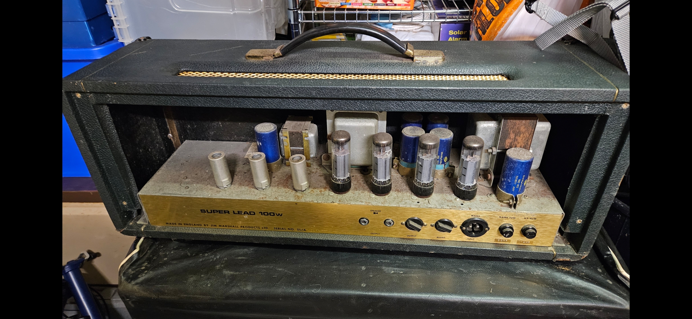 I'm sure I had some really helpful replies some time ago about my 1969-made (1959 model) Marshall super lead head + 4x12 cab (original Celestion speakers + cones, etc).
